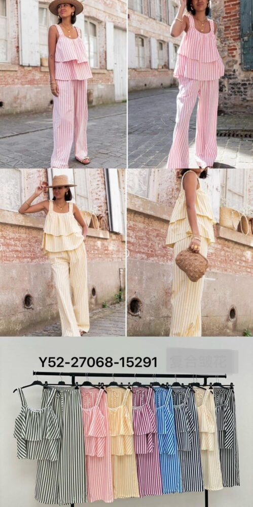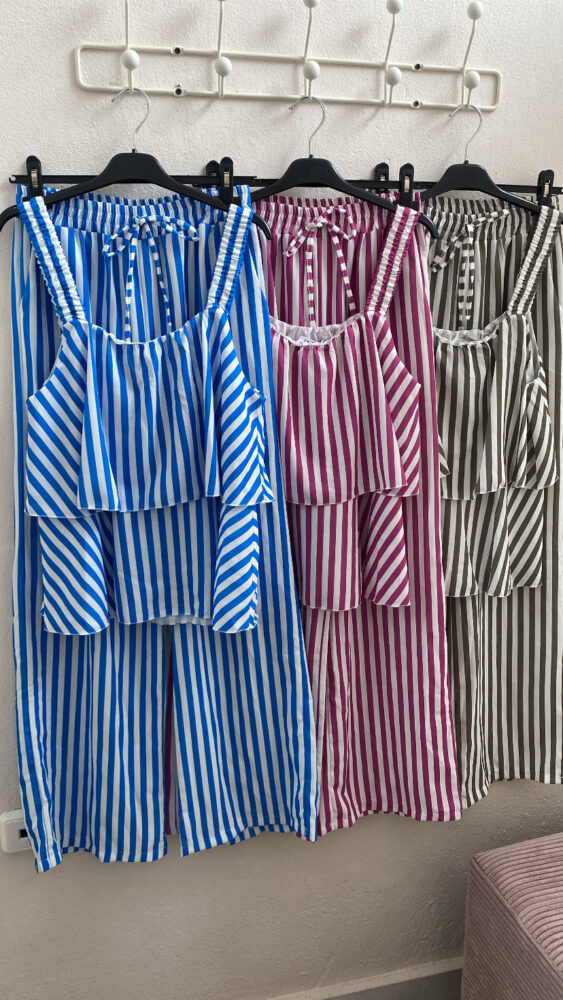 • Σετ ριγέ Παντελόνα-Μπλούζα