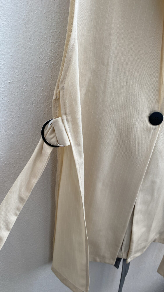 •Αμάνικο γιλέκο με γιακά και πέτο.Κλείσιμο με κουμπί μπροστά.ανοιχτό στο πλάι που κλείνει με λουράκια.
