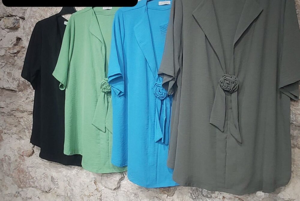 • Μπλούζα κοντομάνικη άνετη με κορδόνι και V στο μπροστινο μέρος κ τσέπες διακοσμητικές!