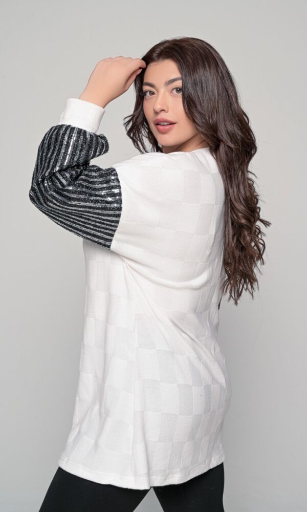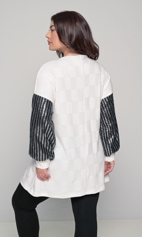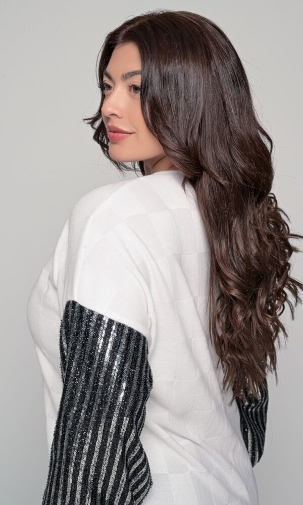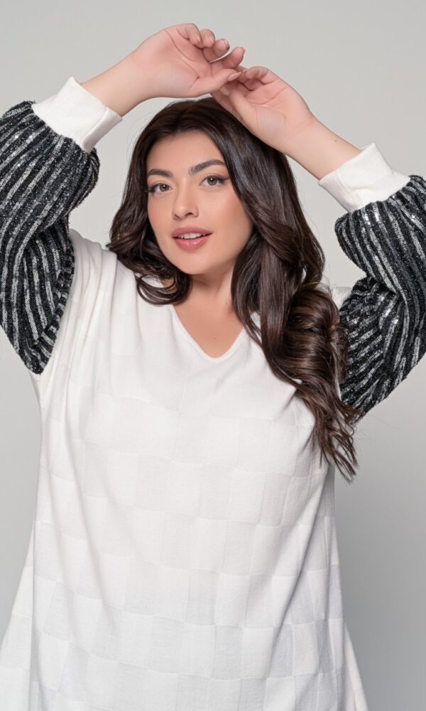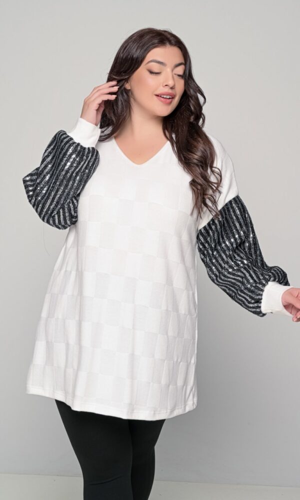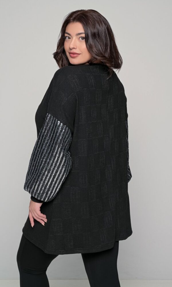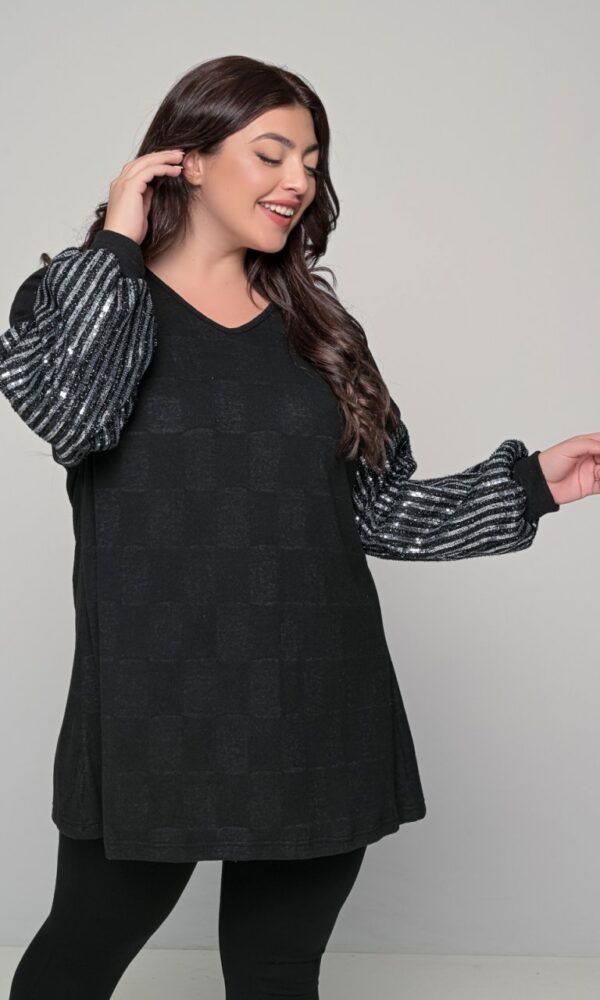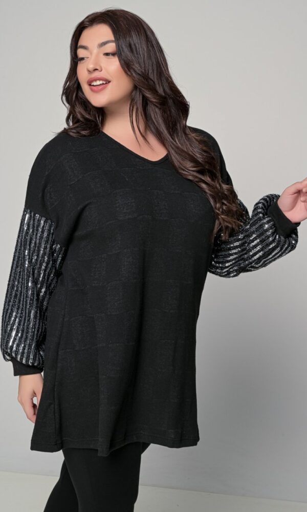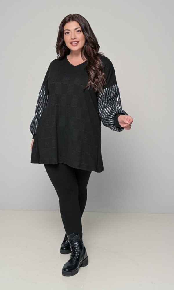 - Μπλούζοφορεμα πλεκτο με φαρδυ μανικι με παγιέτες και λάστιχο στο καρπό.