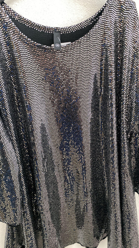 •Μπλουζοφόρεμα κοντό μεταλιζέ με 3/4 καμπάνα μανίκια