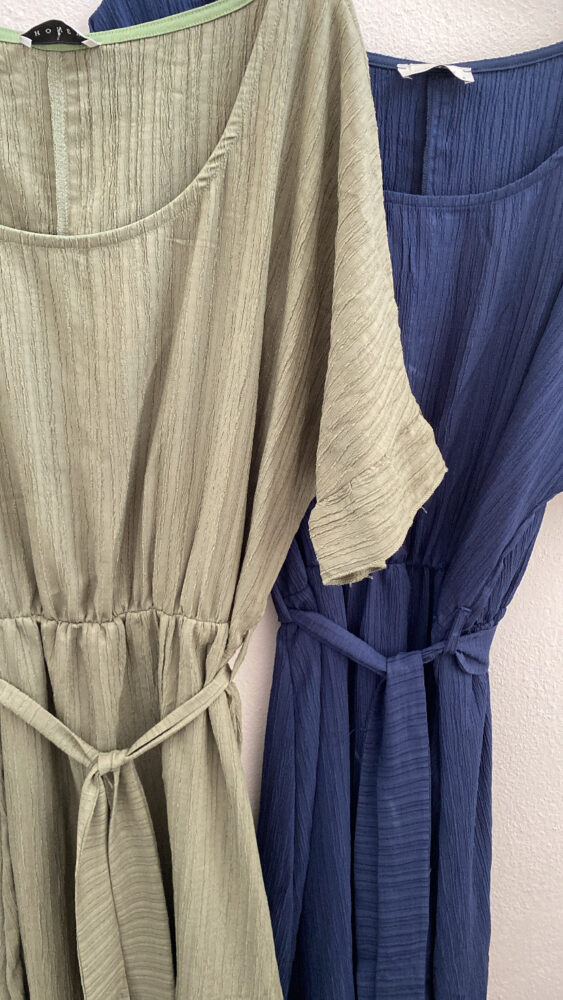 • Φόρεμα με κοντό μανίκι και βολάν στο τελείωμα του μανικιού με λάστιχο και ζωνάκι στην μέση. Άνετο κ δροσερό για όλες τις ώρες.