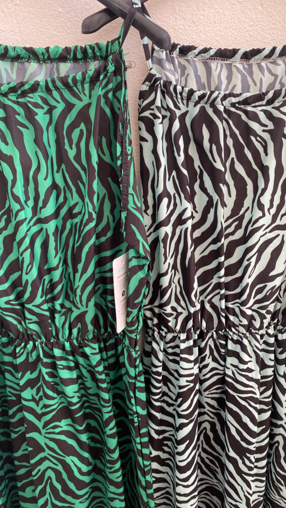 •Φόρεμα μακρύ animal print με τιρανάκι που αναδεικνύει τους ώμους, λάστιχο στη μέση,σκίσιμο και στις δύο πλευρές στα πλάγια
