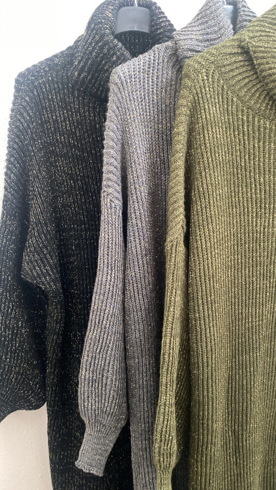 • Φόρεμα πλεκτό μακρύ ζιβάγκο με χρυσοκλωστή