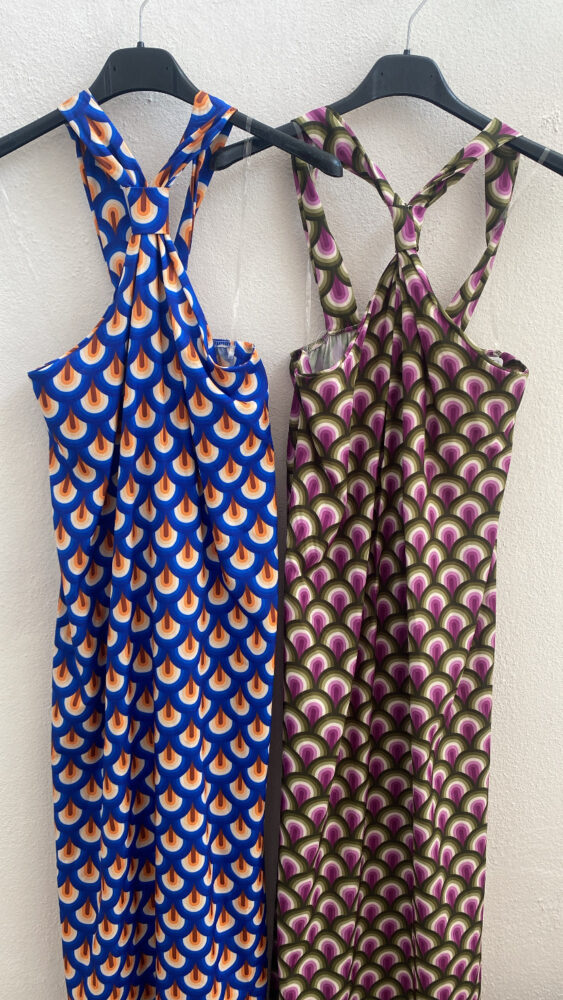 •Φόρεμα μίντι σε ίσια γραμμή με δέσιμο κάτω απο τον λαιμό και τιράντες.Άνετο και δροσερό για όλες τις ώρες.