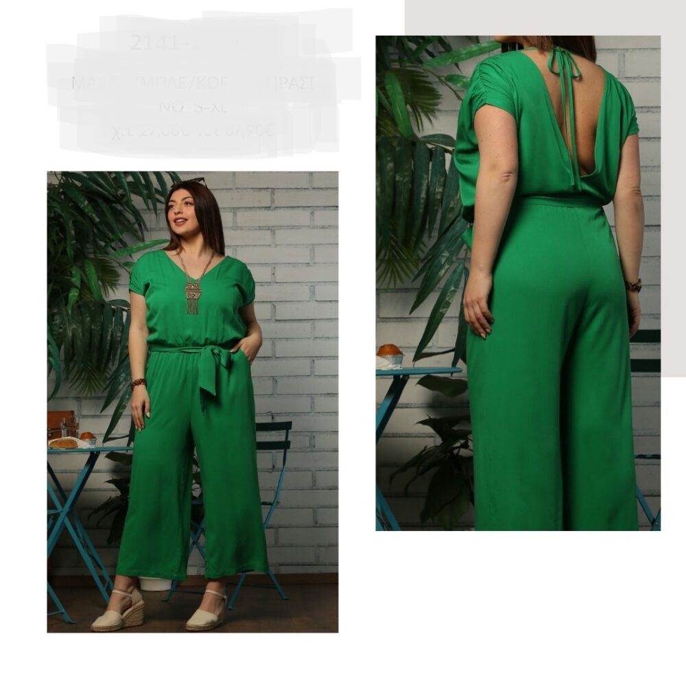 - Plus size φόρεμα κρουαζέ μίντι με πράσινα μοτίβα και V στο στήθος