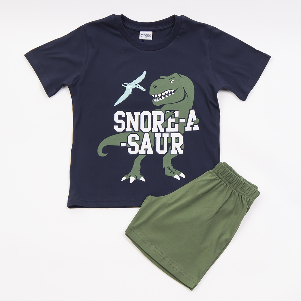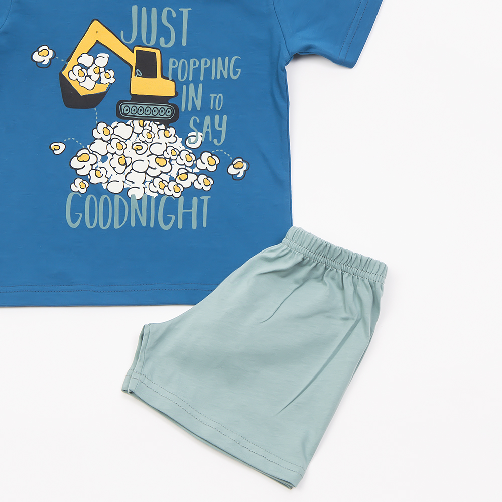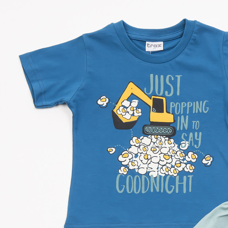Κοντομάνικη μπλούζα πετρόλ χρώμα με σχέδιο μηχάνημα που σκάβει. Κοντό παντελονάκι βεραμάν με λάστιχο στην μέση .