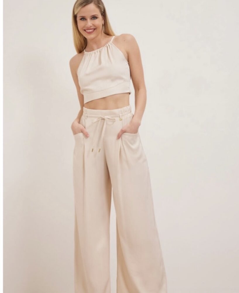 • Παντελόνι με λάστιχο στην μέση,κορδονάκι για ζωνάκι και τσέπες