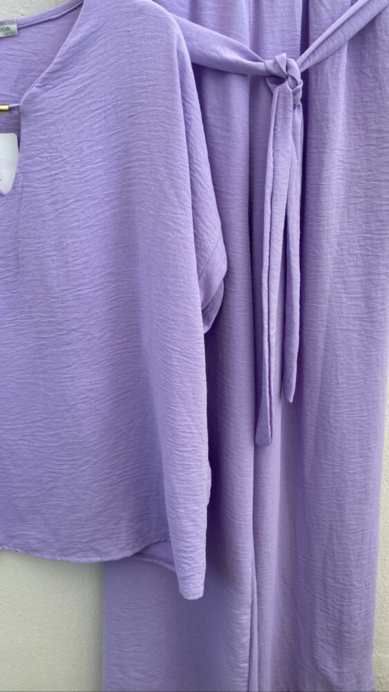 •Σετ καλοκαιρινό με μπλούζα με κοντό μανίκι και τοκά στον λαιμό. Παντελόνι με κορδόνι για ζώνη σε ισια γραμμή