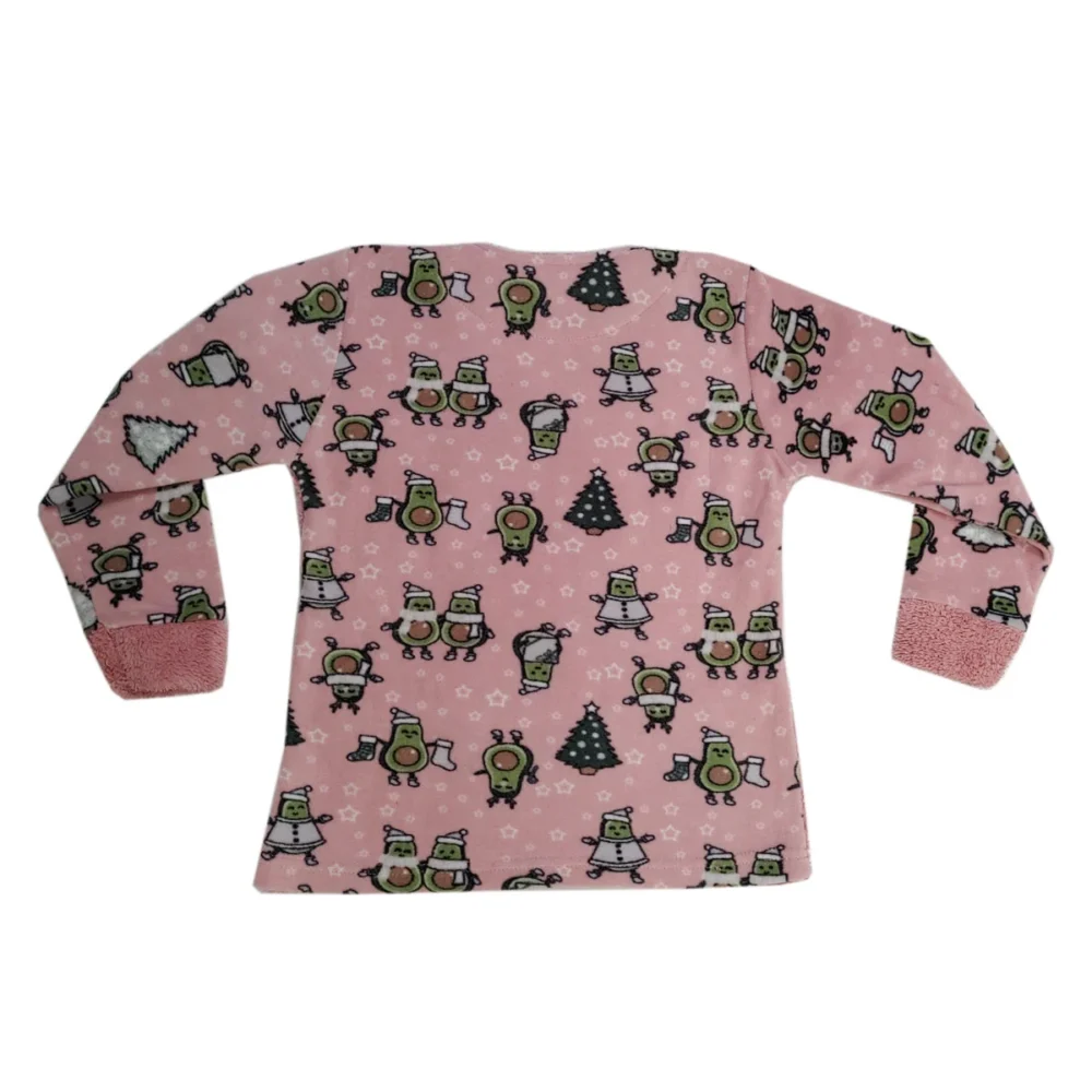 - Παιδική μακρυμάνικη πιτζάμα fleece με σχέδιο christmas avocado για κορίτσι.