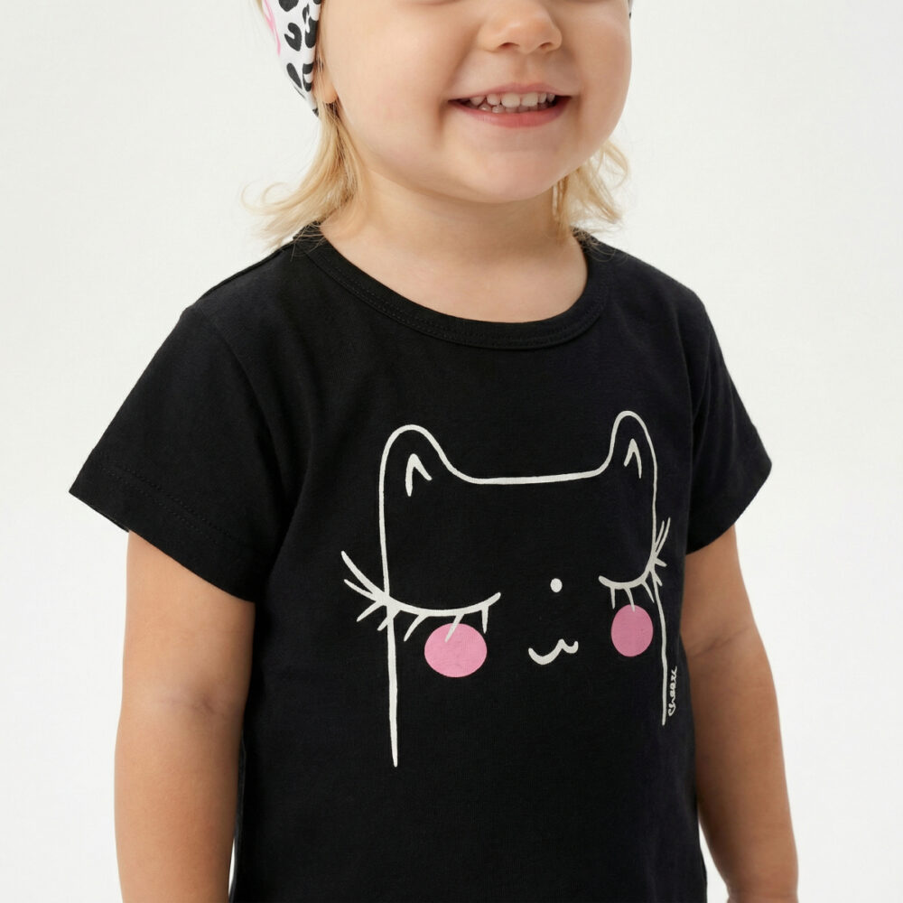 Μαύρο κοντομάνικο μπλουζάκι με στάμπα κ φιογκάκι μπροστα .Παντελόνι κολάν μέχρι τον αστράγαλο λευκο animal print με λάστιχο στη μεση και ιδια κορδέλα για τα μαλλιά!